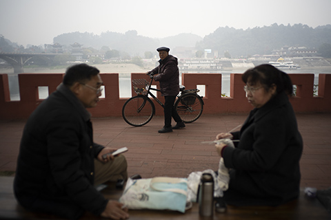 2025年,四川省乐山市,江边的人们。by